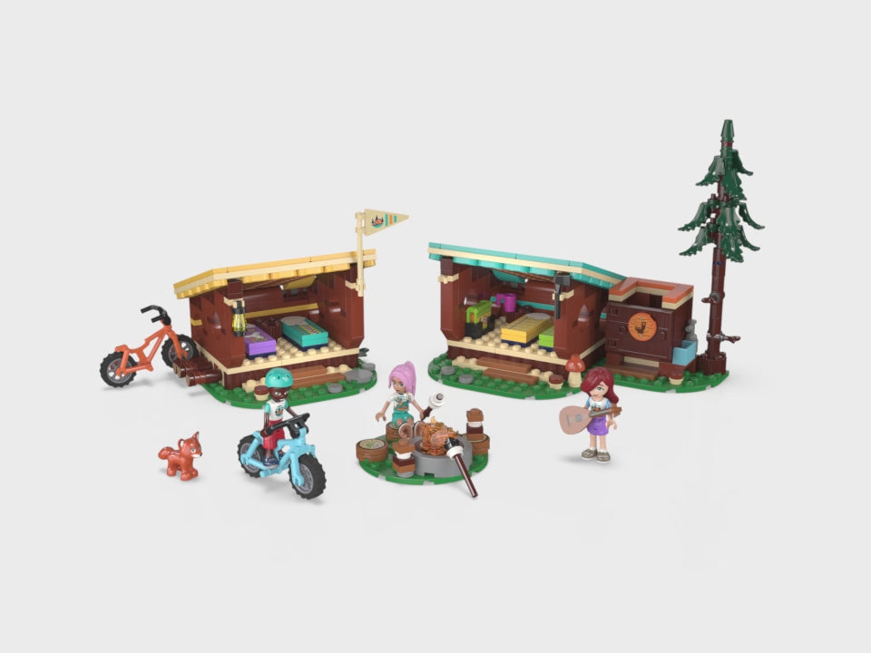 - Set de aventuras en un campamento de juguete: El juego LEGO® Friends Campamento de Aventura: Cabañas Confortables para niñas y niños a partir de 7 años incluye 2 refugios de acampada construibles, una hoguera y accesorios para interpretar historias