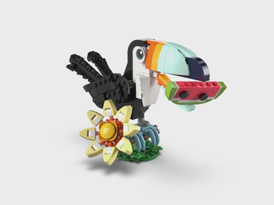 - 3 opciones de construcción de animales tropicales en 1 caja: La figura LEGO® Creator 3en1 Fauna Salvaje: Tucán Tropical para niñas y niños a partir de 7 años les permite construir y reconstruir 3 animales de juguete con los mismos ladrillos
